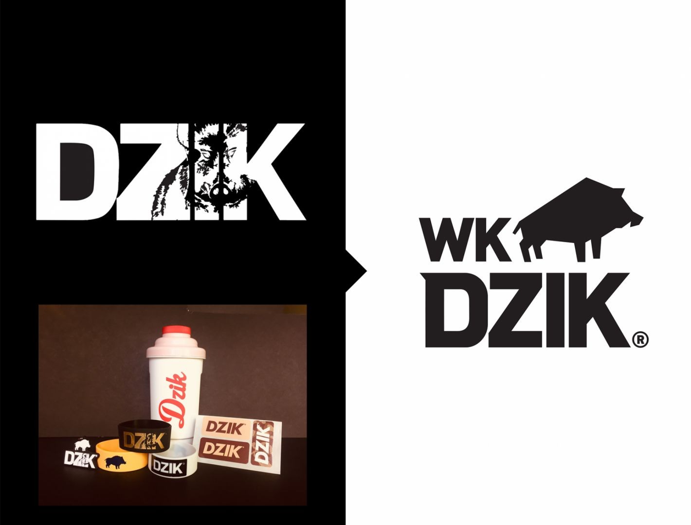 Wraz z nową nazwą WK DZIK koniecznością stało się stworzenie nowego logo, mogącego komunikować i wzmacniać markę przez wprowadzenie uporządkowanego sposobu zapisu i aplikowania na wszelkie produkty. Do czasu wdrożenia naszego nowego znaku, DZIK funkcjonował bowiem w bardzo wielu formach. Przez tą zmienność był też często podrabiany, niewidoczny i pozbawiony autonomii. W nowej kreacji znaku istotne było zawarcie zwierzęcej siły, echa geometrii blokowisk, stylistyki szablonu oraz nawiązanie do dotychczasowego znaku w jego prostszych wariantach.